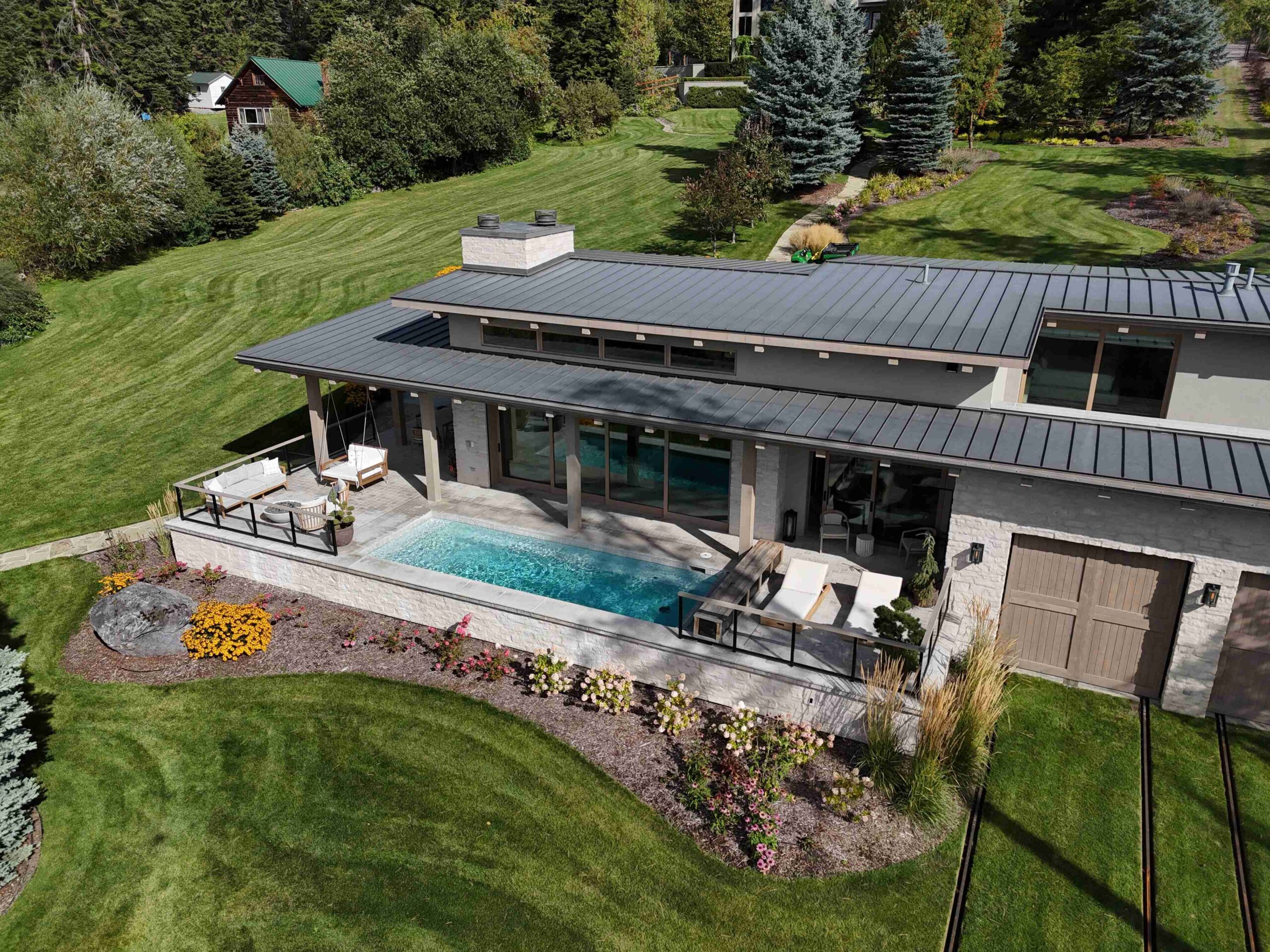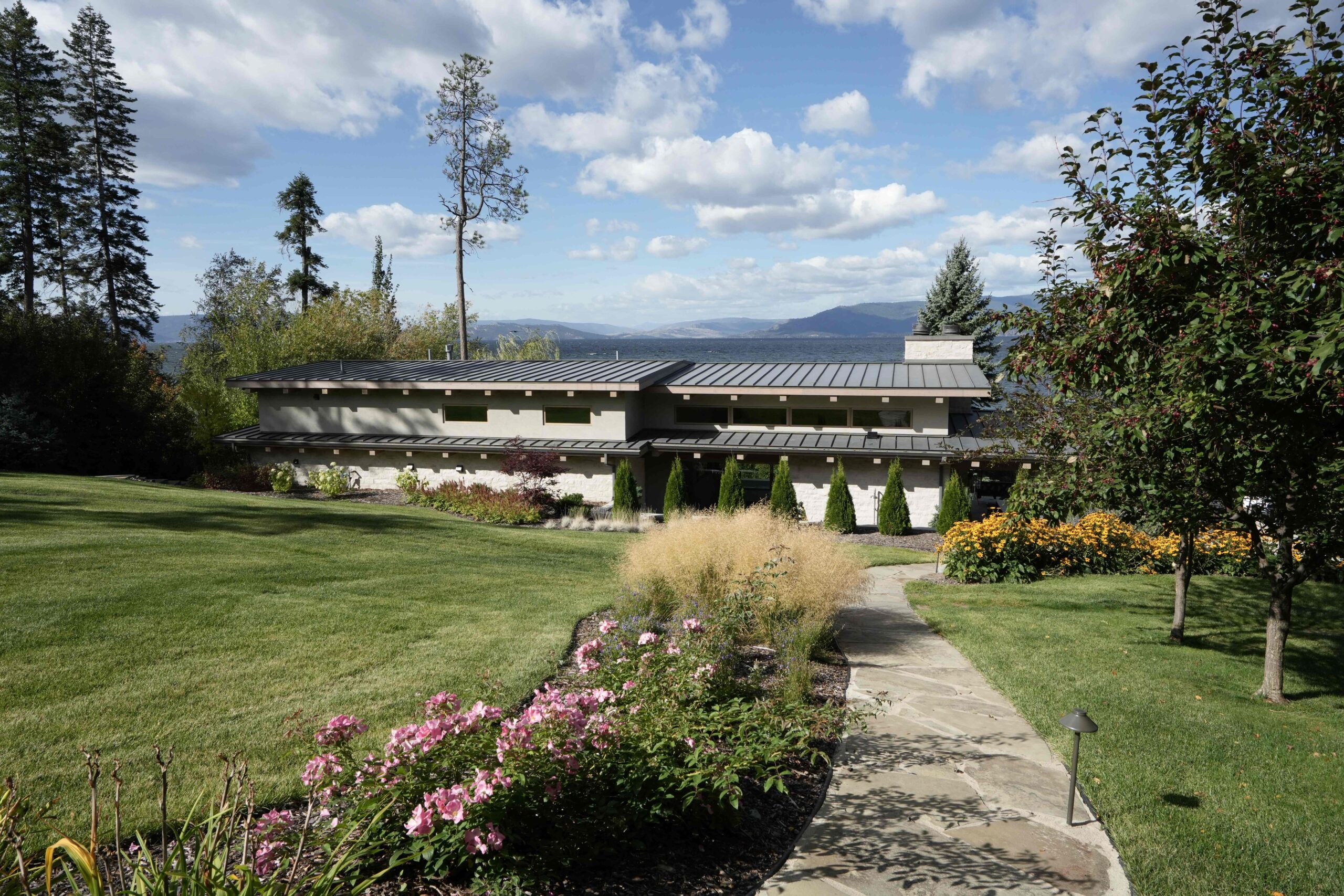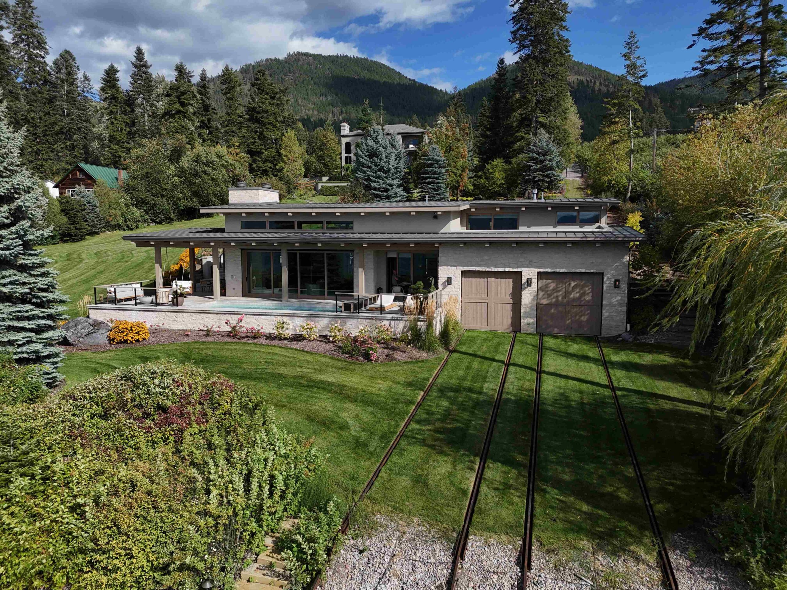 Montana Rockworks provided the Tumbled Middleton Limestone Thin Veneer, Beaver Creek Capstone, and various stone features such as Oxford Flooring Tile, Oxford Pavers, and Skyline Ridge Retaining Wall Stone, giving the property its stunning natural stone accents that reflect the rugged beauty of Montana’s landscape.