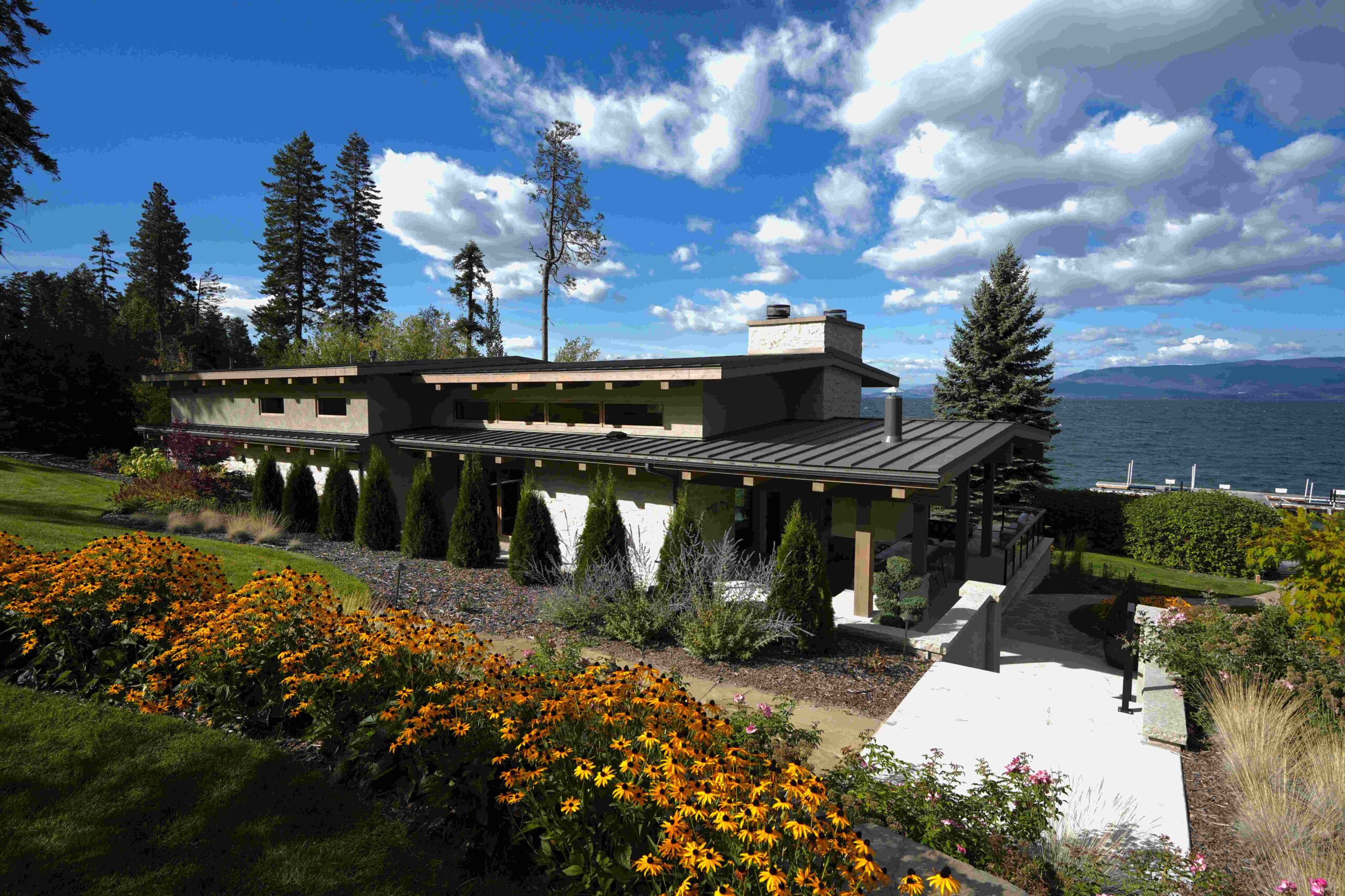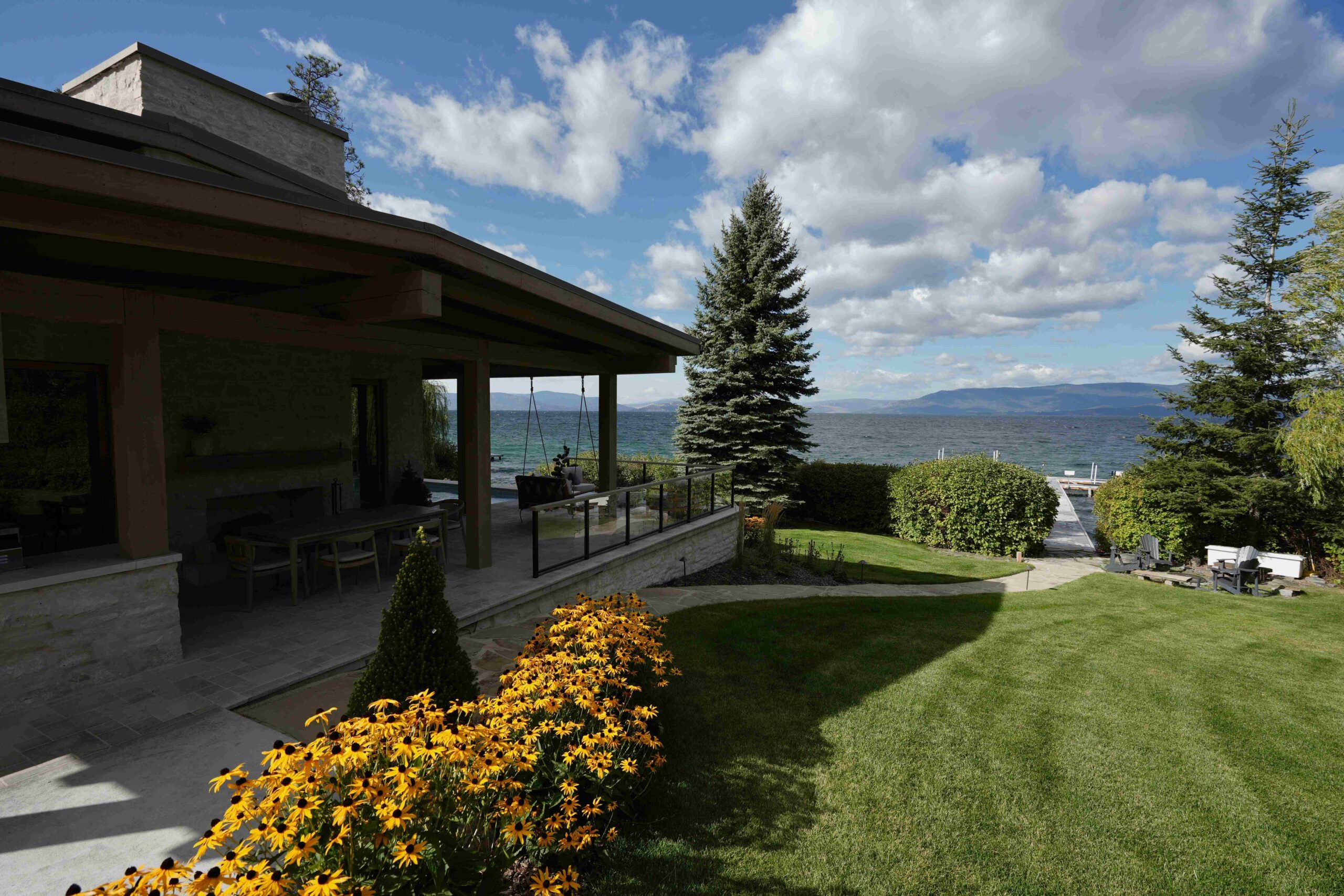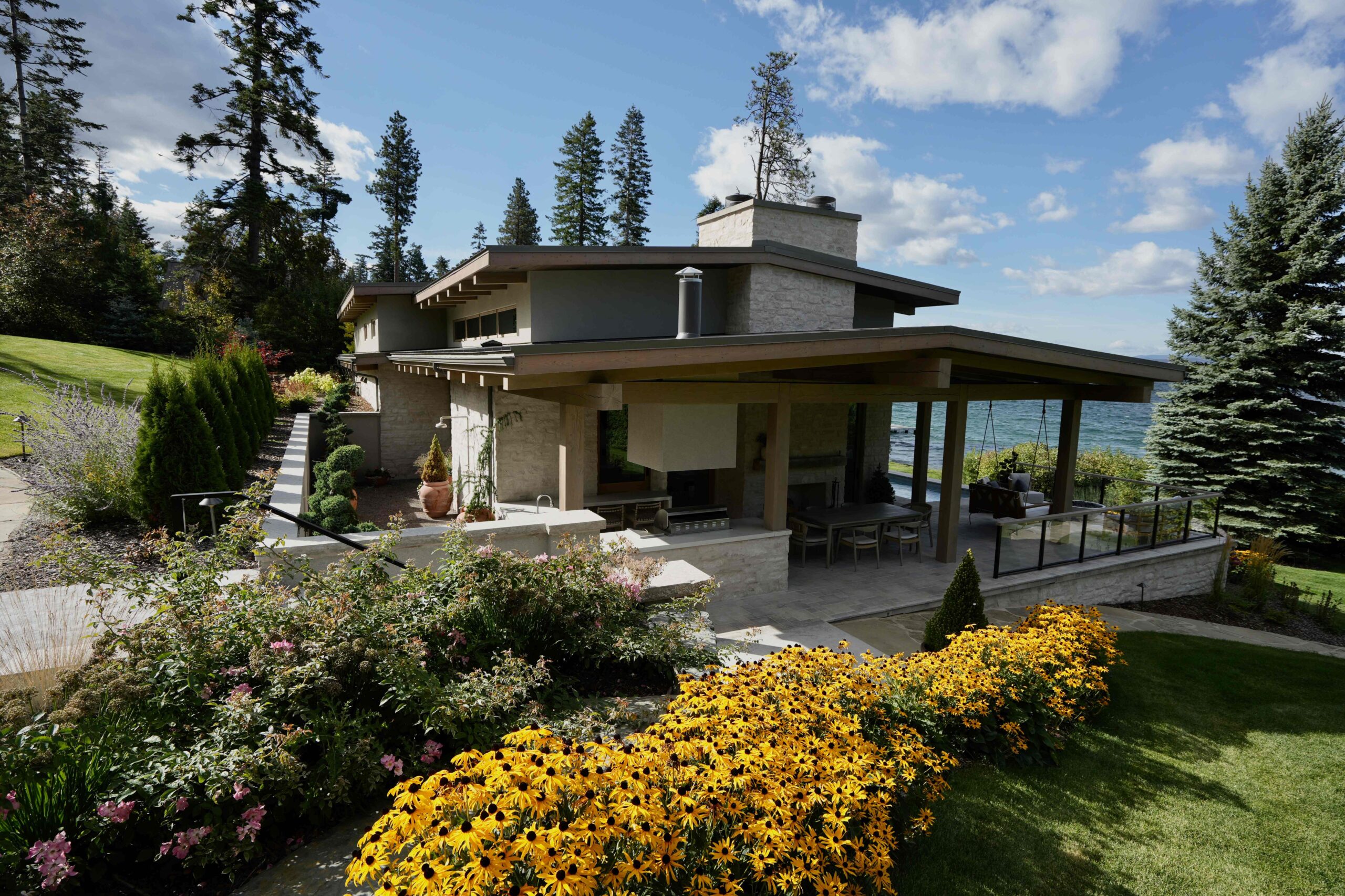 Valley Glass provided the sleek and modern Sierra Pacific Windows and Doors, renowned for their thin profiles and crystal-clear views, perfectly complementing the expansive, panoramic views in this home. Additionally, the Weiland Lift and Slide Doors installed by Valley Glass offer easy operation and a low-profile track system, enhancing both functionality and design.